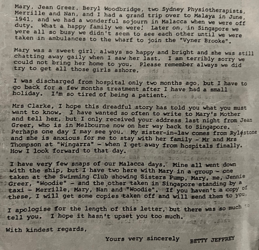 One day in late January 1947 Flora opened a typed two-page letter that began, ‘Dear Mrs Clarke…I was a friend of your daughter Mary…was with her when she was last seen.’