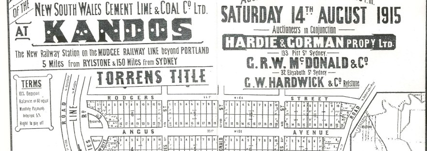 Four things about me. I like reading, writing, researching and living in the country. In particular I like living at Kandos, where we have been for more than a decade. I have deep roots in this part of the country. My mother spent her early life in Kandos. My father was born at Rylstone. My grandparents were pioneers of Kandos and Rylstone. And I was born at Lue - and went to school in Mudgee. The history of this area excites me and I would like to share it with you.